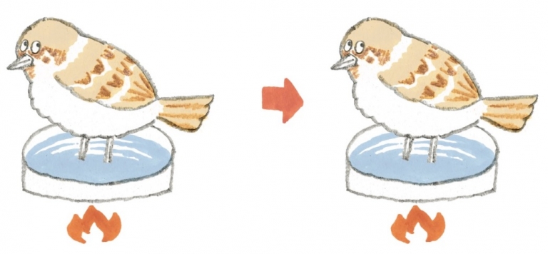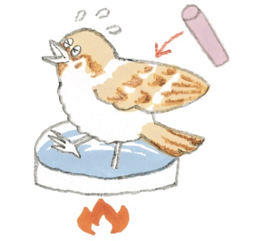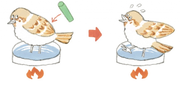 米国プリンストン大学が行った、スズメの実験を紹介します。ふつうのスズメは48℃のお湯に足をつけても平気ですが、お湯の温度を上げて52℃を超えると痛みで足を引っ込めるようになります。