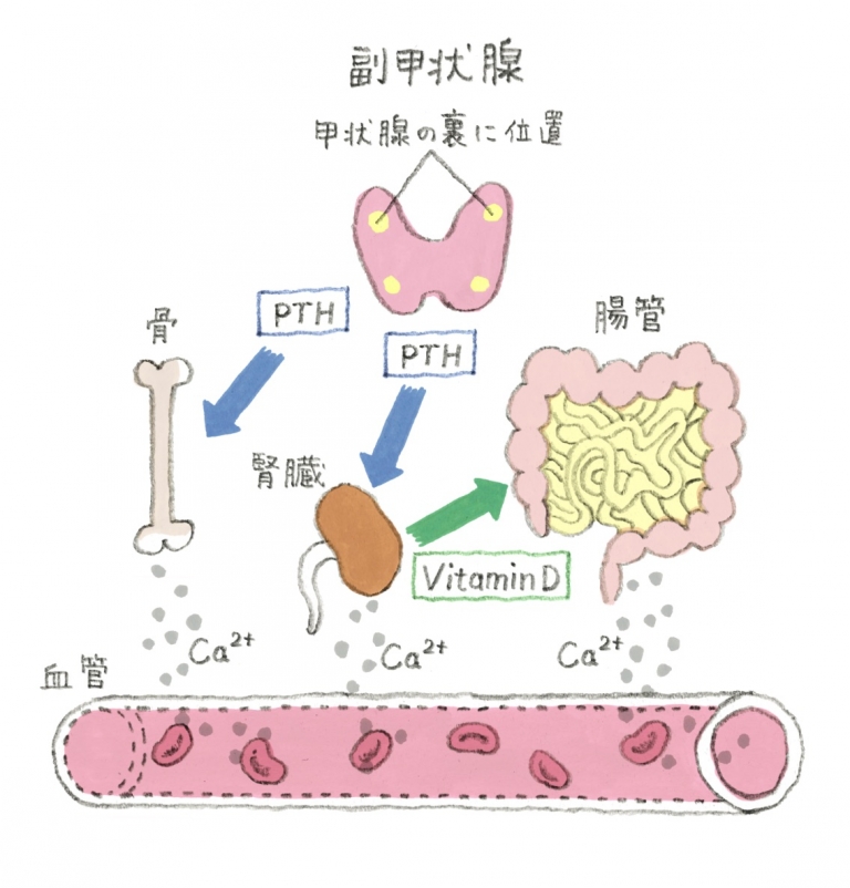 ホルモンは“痛み”とはあまり関連がないように思われがちですが、実はそうではありません。一つの例として「副甲状腺機能亢進症」という疾患があります。この病気では副甲状腺ホルモンが過剰に分泌されますが、それにより骨に含まれるカルシウムを血液中へ放出させ、腎臓からの再吸収を促進したりした結果、時間の経過とともに骨粗鬆症や骨折、運動器の痛みを引き起こすこともあるのです。