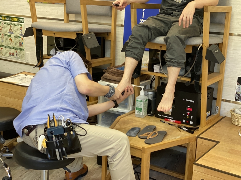 「我々の中敷きの考え方としては、足首とかかとの骨を正しい骨格に戻してあげる、というのが目的。型をとる際もそのあたりによりフォーカスしていて、指先あたりは自由に動くように作ります」