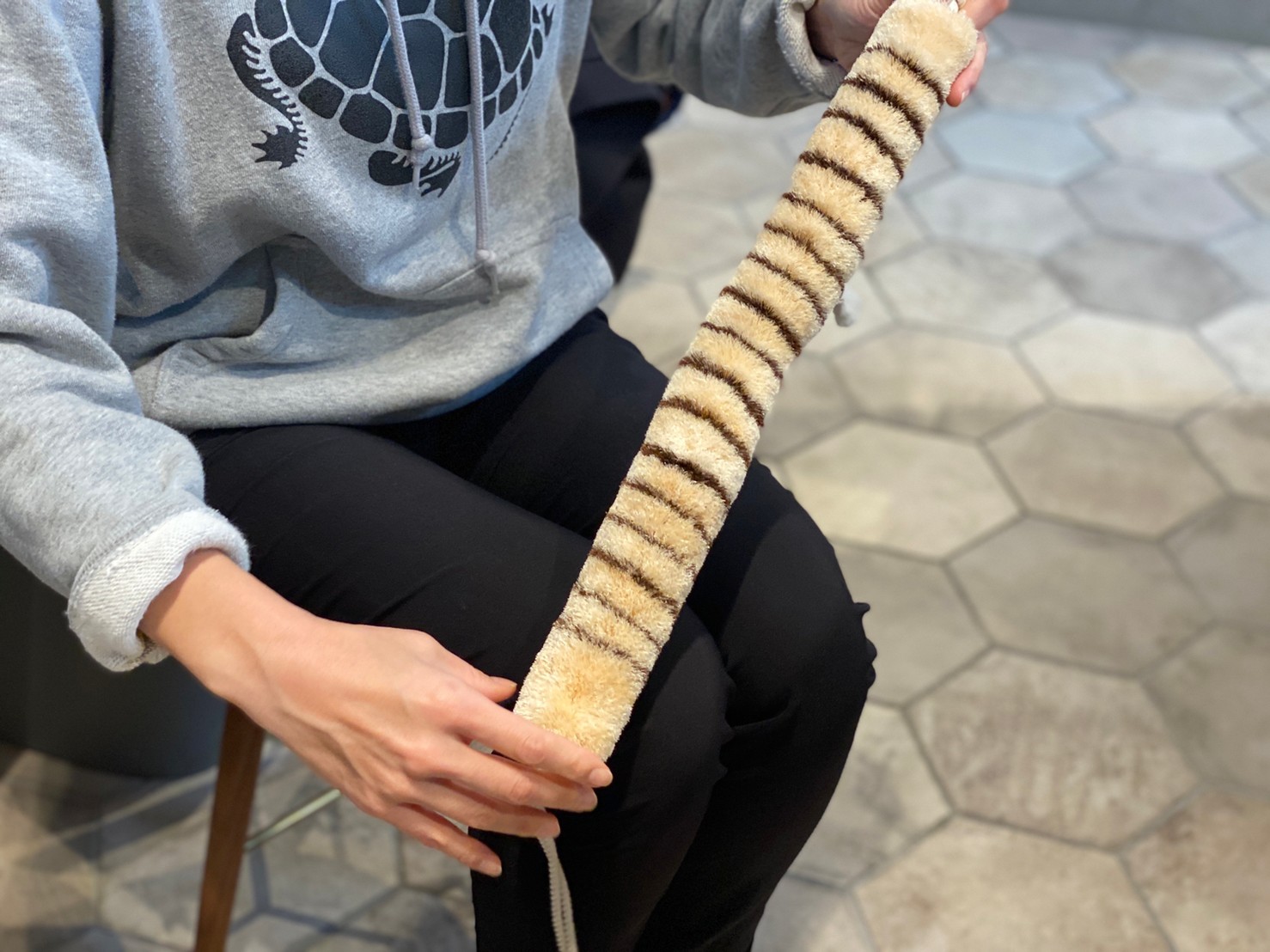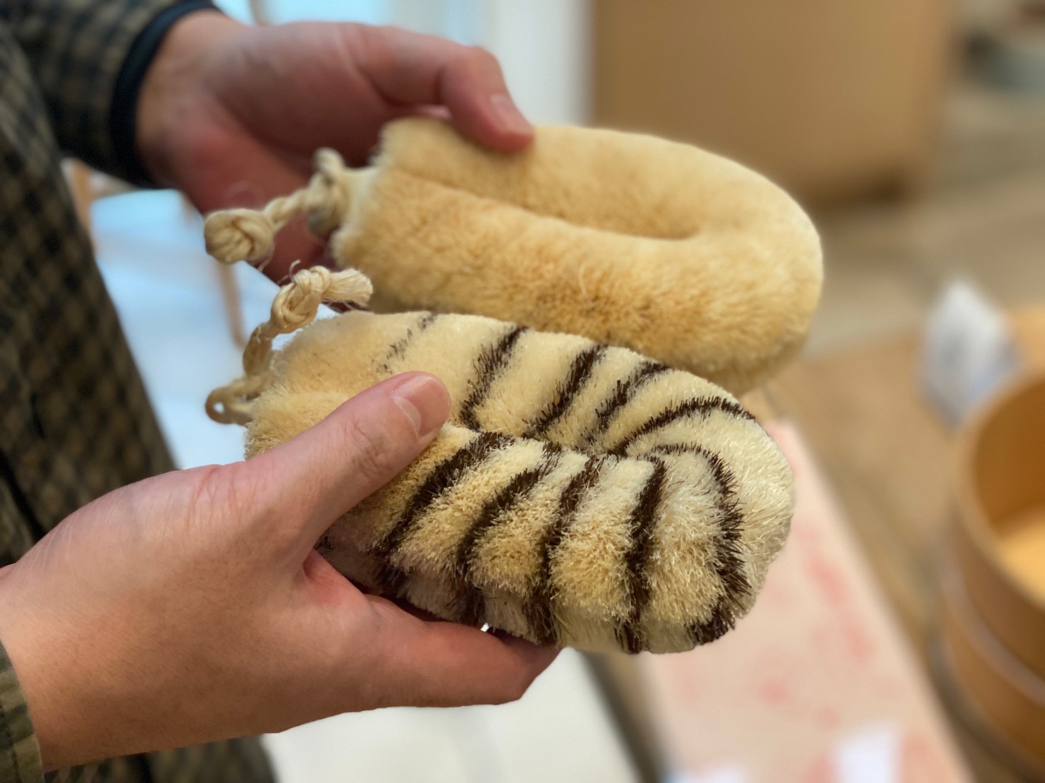 「サイザル麻を使ったサトオさんは、水を含ませるとしっとりやわらかくなるので、初めての方にオススメです。まずは 皮膚の厚い足裏から始めて、肘や膝などで慣らしていくといいと思います」と早戸さん。