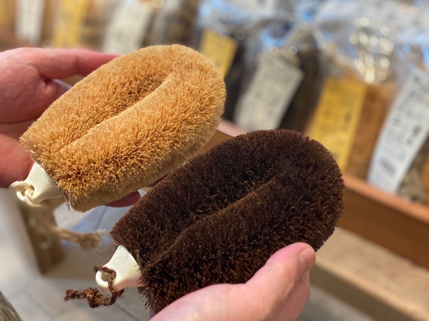さて、前置きが長くなりましたが、今回の目的は“ボディケア用のたわし”です。それは専用のコーナーにきれいに並べられていました。しかも白いものや茶色いもの、形状が長細いものまで、思ったより種類豊富。