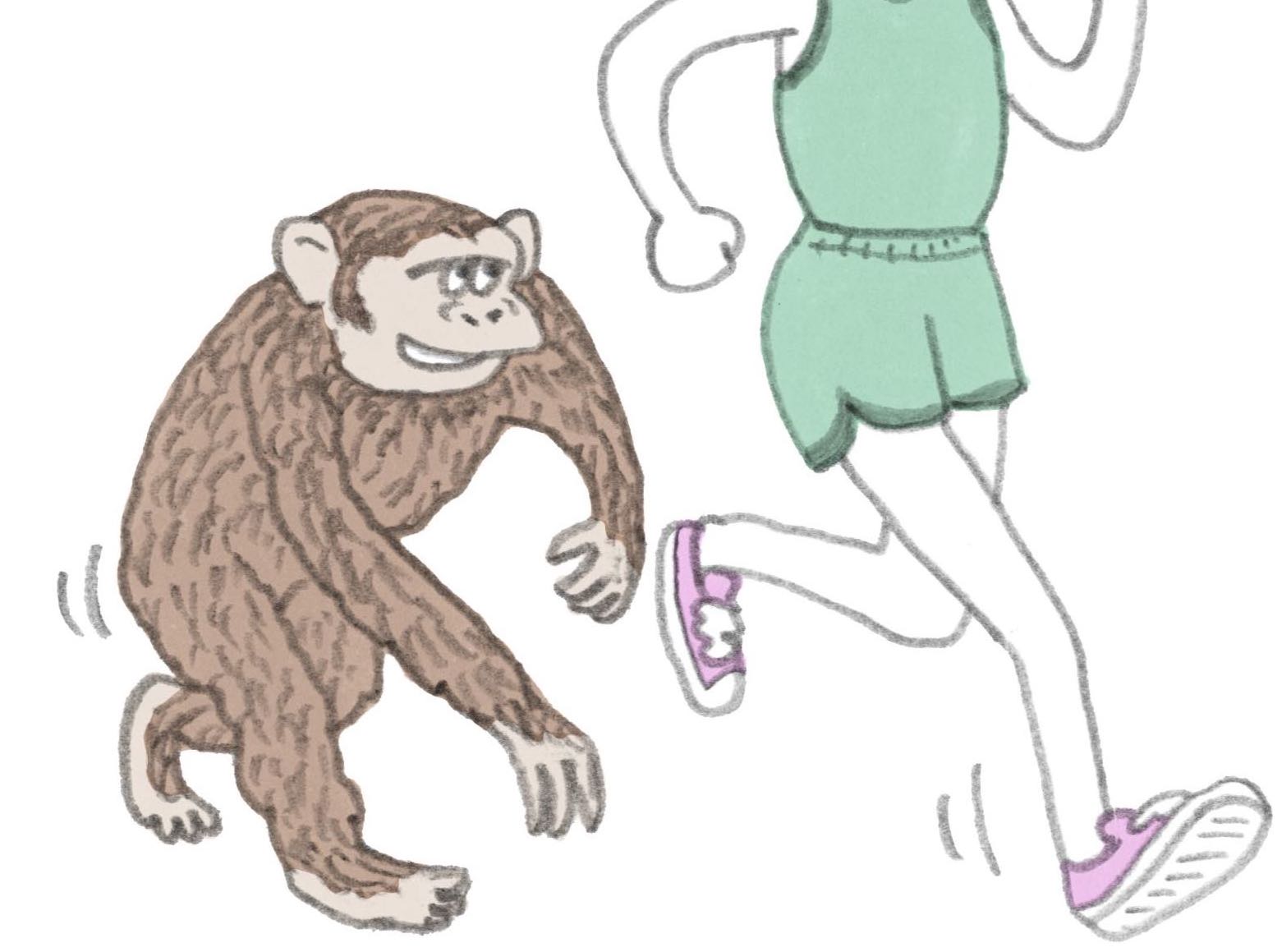 チーターと100m走勝負をすれば完敗するのは火を見るより明らかですが、10000m走やマラソンではヒトが勝ちます。チンパンジーはヒトに最も近い動物として知られ、DNA配列の95%はヒトと共通していますが、ヒトのようなランニングはできません。ヒトはチンパンジーと異なり、体毛が少なく汗腺が発達し、体温調節機能に優れ、長時間ランニングするのに都合がよいように脚が長くなり、お尻の筋肉(大殿筋)やアキレス腱、頭を支える首の靱帯(項靱帯)が発達しています。