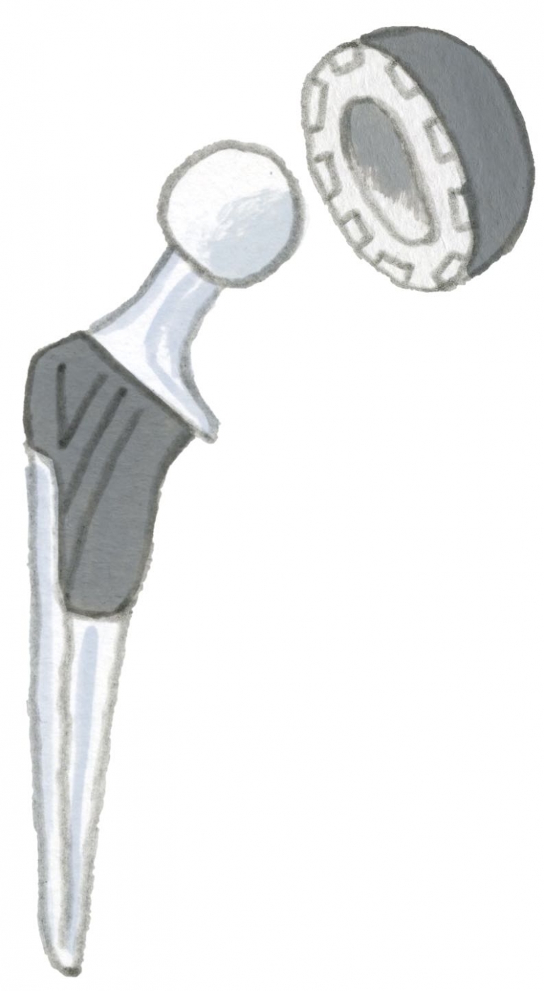 人工股関節(図4)はその器械と手術方法の発達により、幅広い年齢に行われるようになってきました。プロゴルファーをはじめ、プロスポーツ選手のなかにも人工股関節の手術を受けられて方もいらっしゃいますので、術後の生活の制限はかなり小さくなってきたといえます。