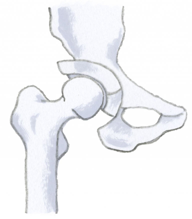 日本国内でもっとも多いのは、股関節形成不全症が原因で変形性股関節症になるパターンです。日本国内で?と思われる方もいらっしゃるかもしれません。実は、股関節疾患は、人種、民族、性別によってその頻度が大きく変わります。日本国内の80%以上は股関節形成不全症が原因です(海外では違います)。股関節形成不全とは、股関節の骨盤側のかぶさりが不十分である状態のことです(図2)。そのため、前述したような体重の3~4倍の負荷を支える範囲が狭くなり、年齢とともに骨・軟骨が損傷されます。40~50歳ごろに股関節の痛みを感じて医療機関を受診される患者さんが多いようです。ちなみに、股関節形成不全の多くは女性であり、その結果としての変形性股関節症も女性が多くなっています。