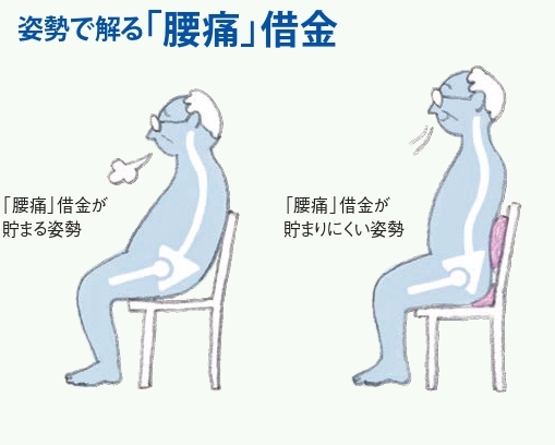 松平先生の言葉を借りれば、これは「腰痛借金」を貯めている状態。実は腰から背中の筋肉にかなりの負担を強いる体勢で、腰痛やぎっくり腰などを誘発する典型的なNG姿勢。テレワーク下での腰痛発症を避けるには、この“腰痛借金”をいかに貯めずに過ごせるかがカギになる。