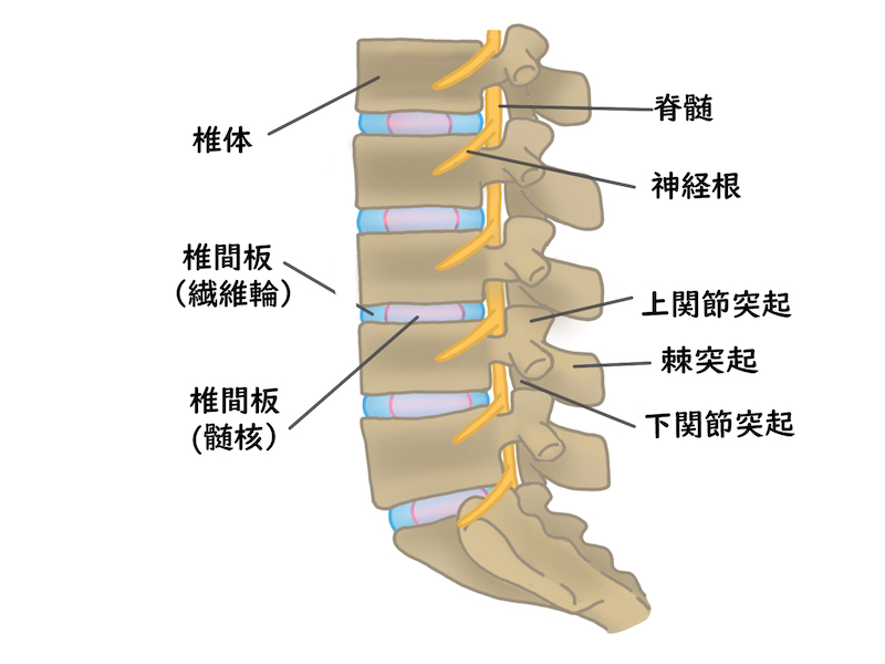 これは主に50代以降の世代に多い病気です。加齢などによって、骨と骨の間にあるクッションの役割を果たす椎間板に亀裂が入ったり、つぶれたりすることで起こります。