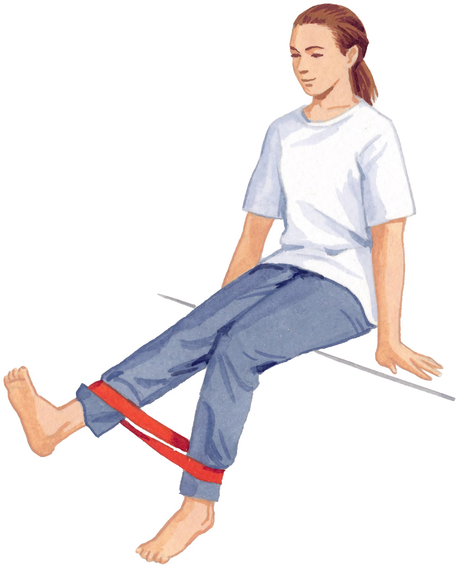 ※ゴムの強さは、膝が最後まで伸びきる強さがベスト。強すぎる場合は、膝が伸びきらない=内側広筋の収縮が十分に得られにくいので注意
