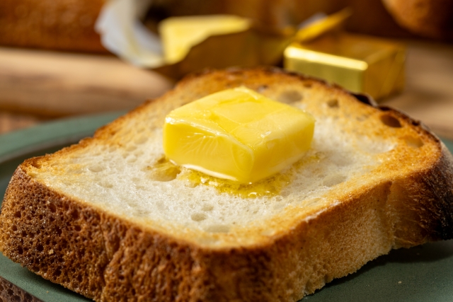 オリーブ油も亜麻仁油も植物油です。植物油大さじ1(12g)のカロリーは108kcalで、同じです。油の種類によりあまり変わることはありません。一方、バター大さじ1のカロリーは84kcalで、植物油より低いため、答えは③のバターです。料理の仕上げにバターを少量加えると、風味もこくもアップして、おいしくなります。