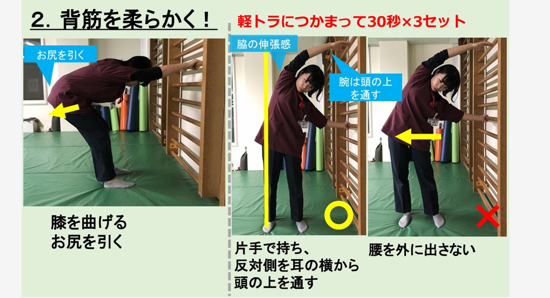 「問題があったのは、脊柱起立筋群や腸腰筋のバランス。おそらく、白ねぎ栽培の過程で、日々同じ姿勢や行動をし続けた結果なのでしょうが、腹側の大腰筋が発達しており、逆に背中側の多裂筋が小さい人が多かった。このアンバランスな筋肉のつき方により体幹のバランスが崩れ、それが腰椎の過剰な動きを誘発することで、腰痛が生じているのではないかと。よって、背筋を鍛え、柔軟性を獲得できるストレッチが必要だと考えたのです」