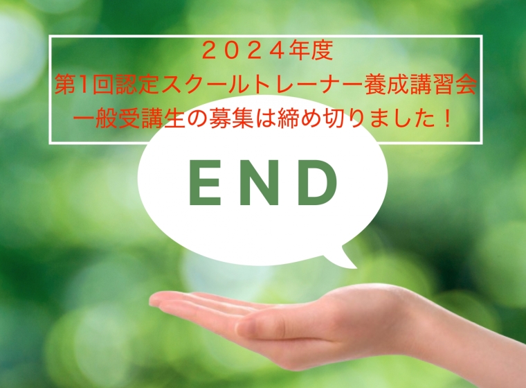 「2024年度 第1回認定スクールトレーナー養成講習会」一般受講生の申込みを終了しました -
