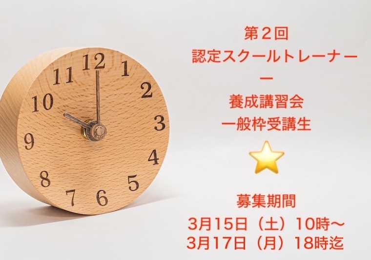 3月15日(土)AM10時より「第2回認定スクールトレーナー養成講習会」一般枠の受講生募集開始! -