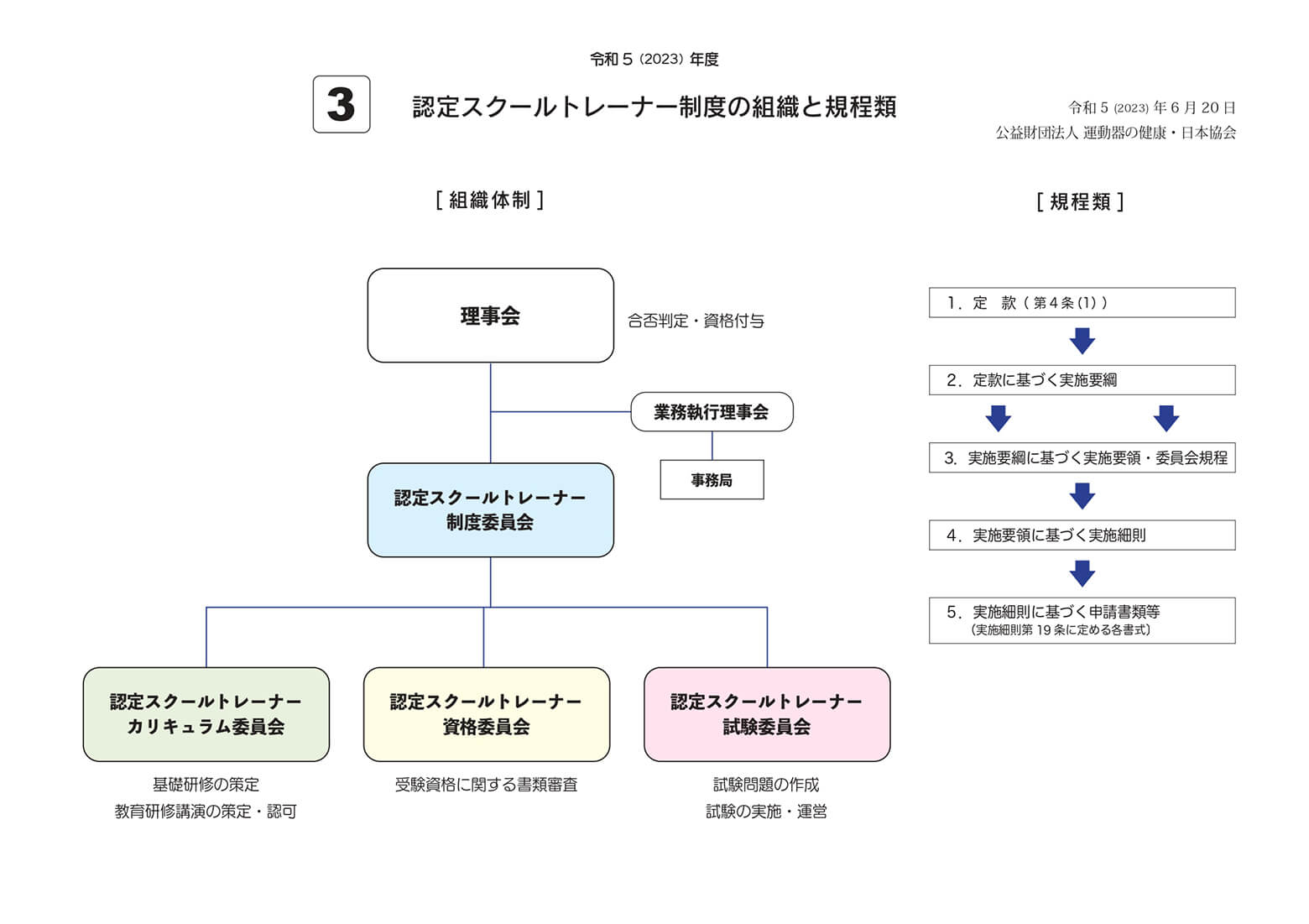 このように、認定スクールトレーナー制度は、将来の社会を支える子どもの運動器の健康増進に資する取り組みとして、歴代の委員長・理事長(2000年より、初代:黒川高秀氏、第2代:杉岡洋一氏、第3代:山本博司氏、第4代:河合伸也氏、第5代:岩本幸英氏、第6代:丸毛啓史氏)以下関係者の熱意とたゆまぬ尽力とにより構築されてきた公益事業です。