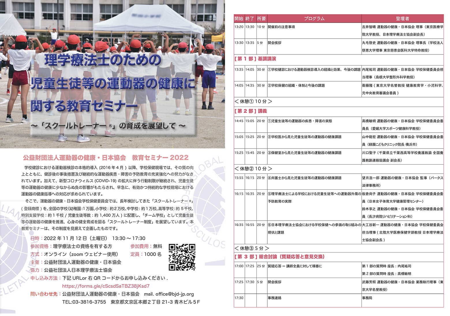 この新しい認定制度に対しまして、理学療法士の方々はもちろん、全国の整形外科医や学校医の先生方はじめ学校関係者の皆様のご理解とご協力を何卒よろしくお願い申し上げます。